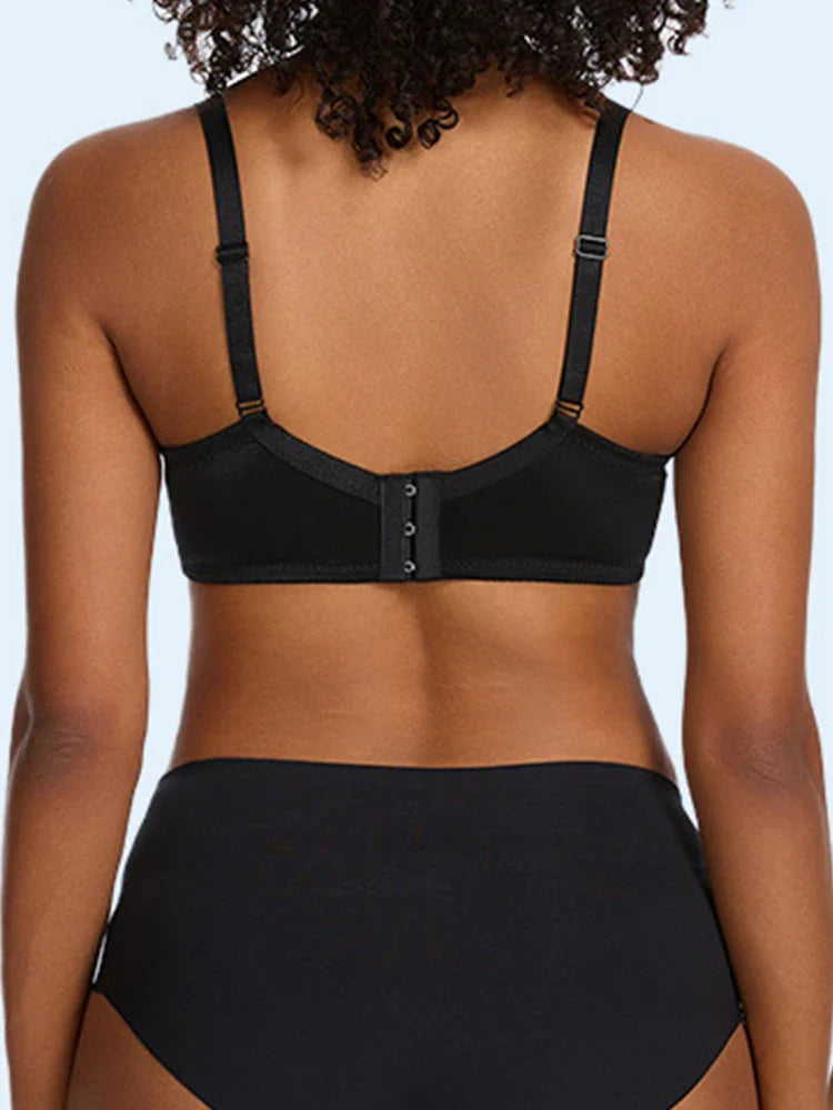 • Plus-size construction with wide straps and reinforced side wings offers superior all-day support.