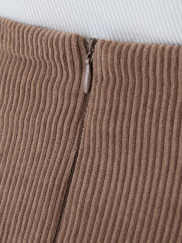 High Waisted Invisible Zipper 2-in-1 Mini A-line Corduroy Casual Skirt