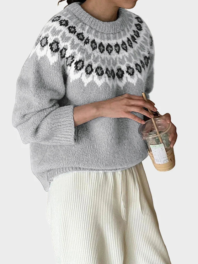 Women's ethnic style long-sleeved round neck Fair Isle sweater