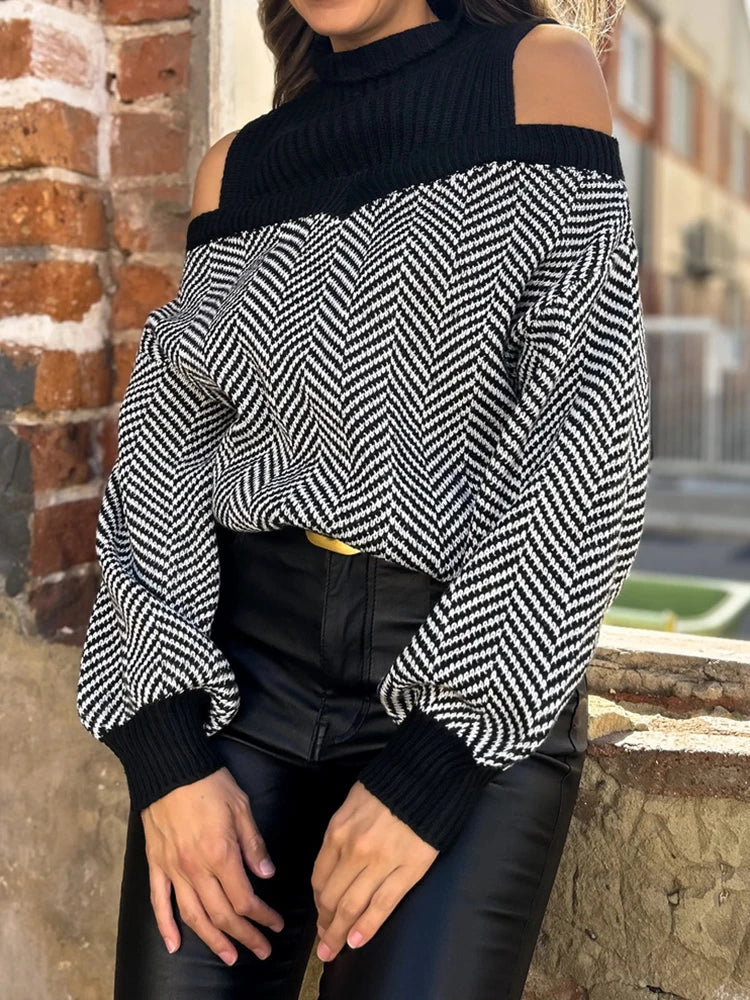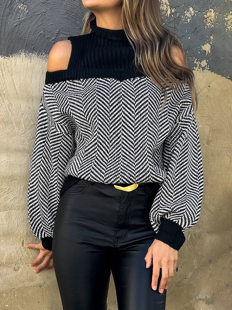 Women's Striped Cold Shoulder Oversized Sweaters